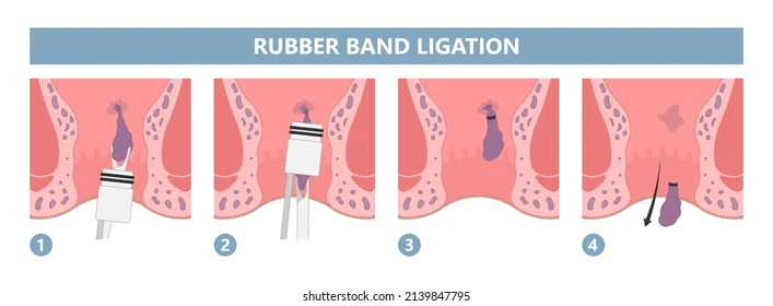 Rubber band ligation: During this procedure, the doctor places a rubber band around the base of an internal pile to cut off its blood supply. The pile shrinks and falls off within a few days /weeks.